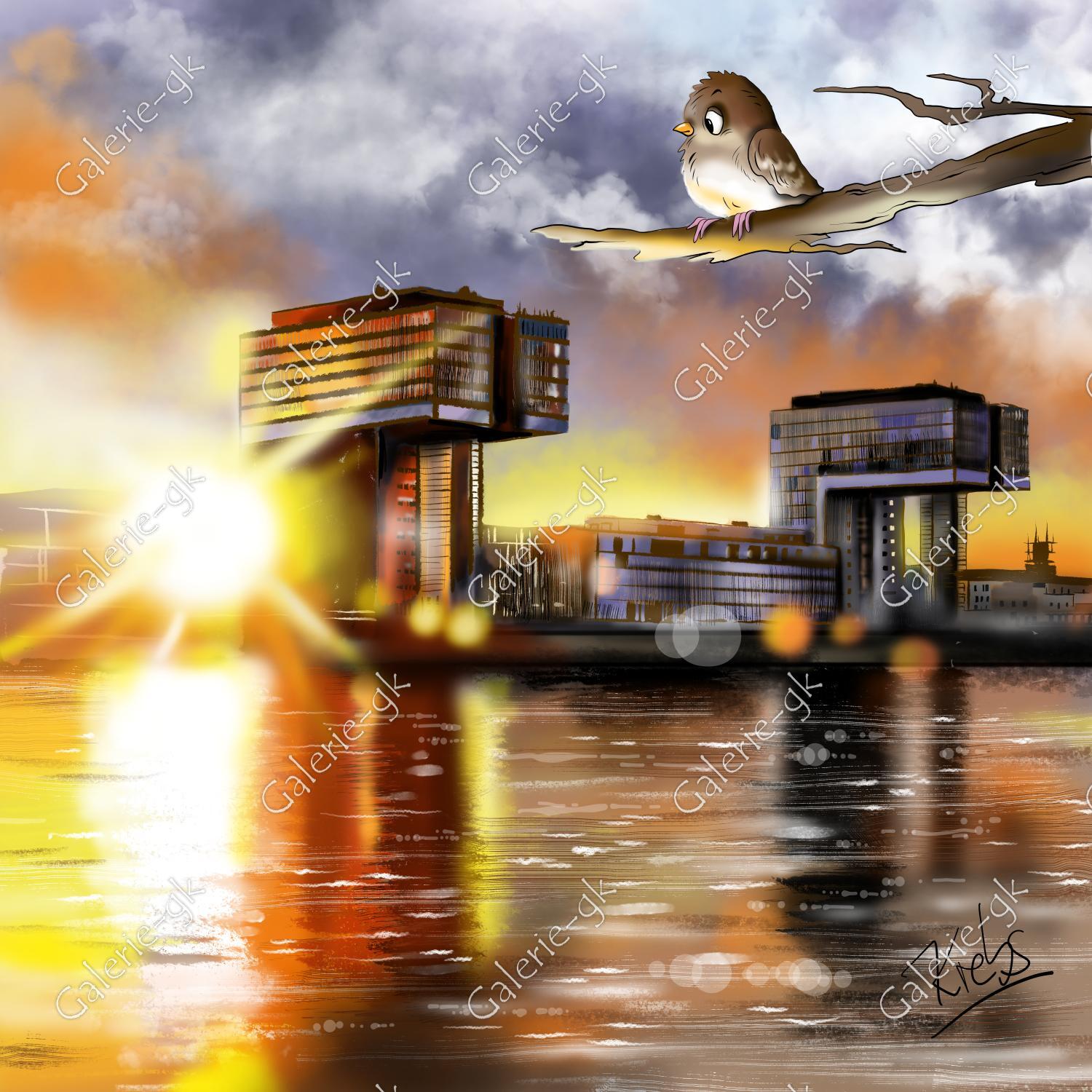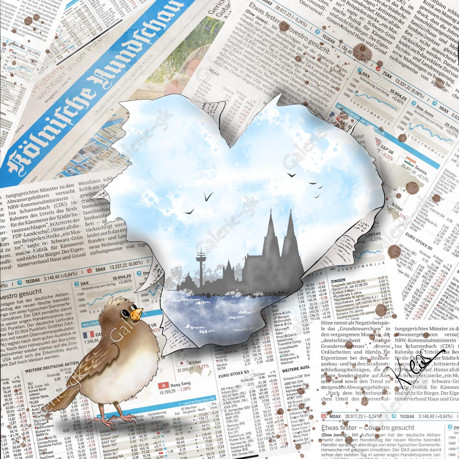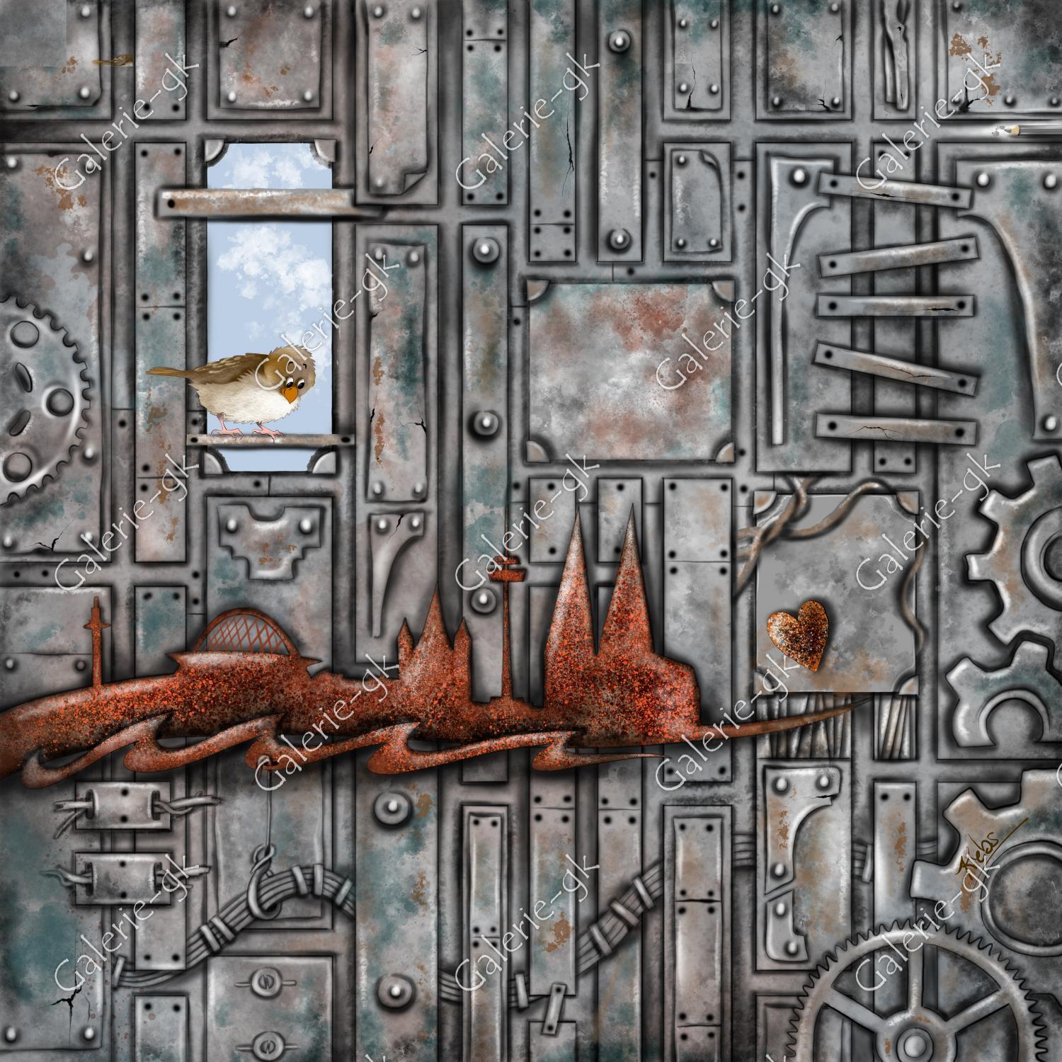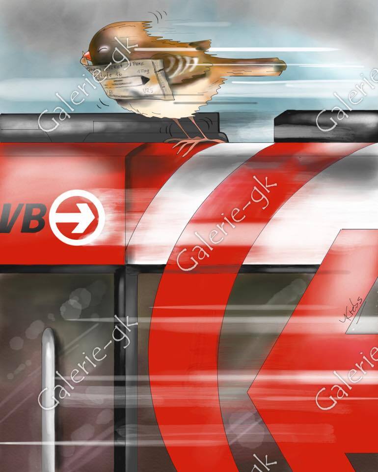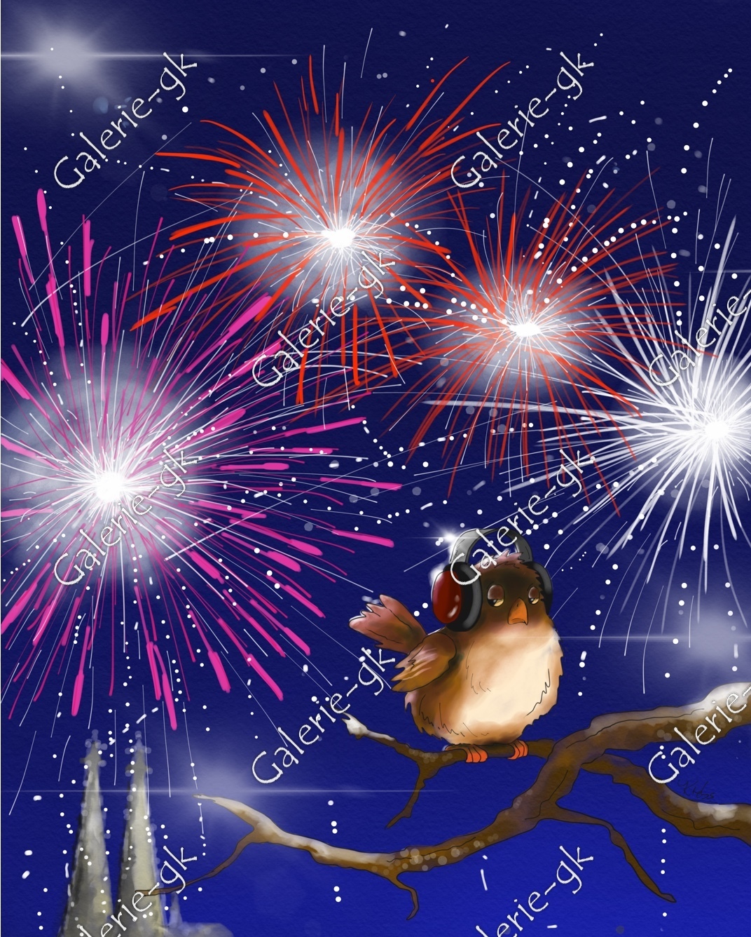 Alle DoMspatz-Motive (sie entstehen mit Adobe Sketch/ProCreate bzw. Fresco) werden als Druck auf Premium-Fotopapier im weißen Glasrahmen (33x33cm/Bildgröße: 20x20 cm, inklusive Passepartout mit handgefertigtem DoMspatz-Logo) angeboten,