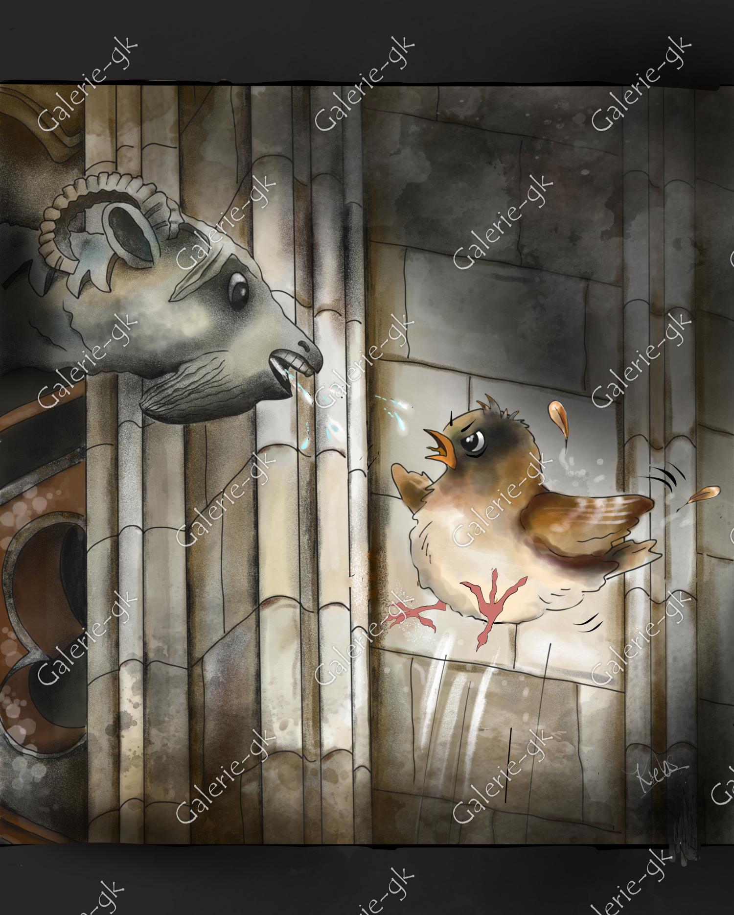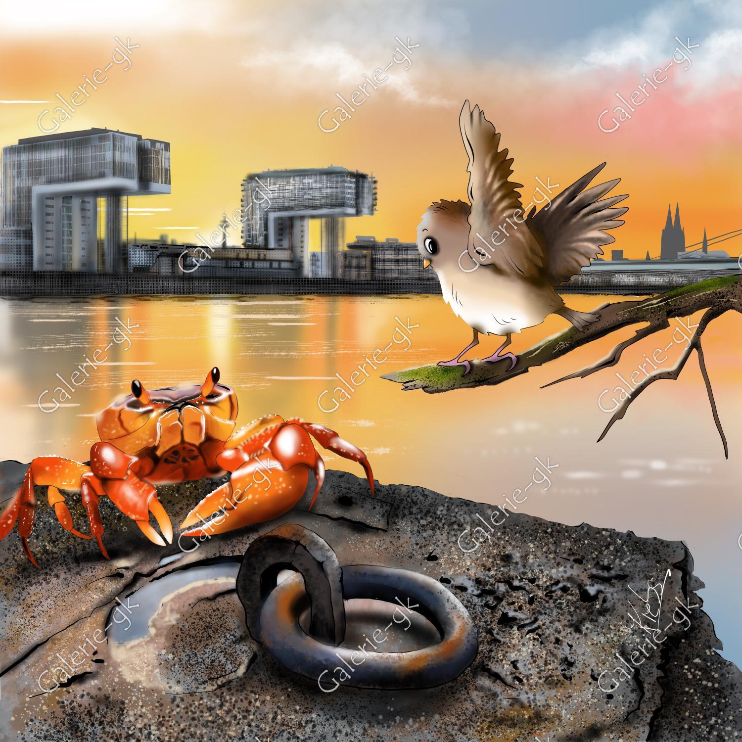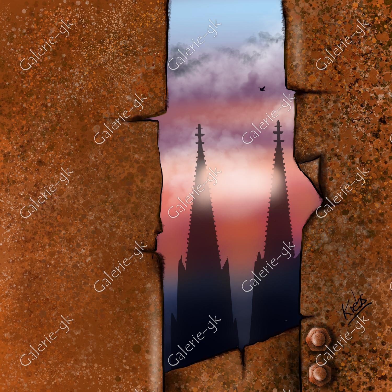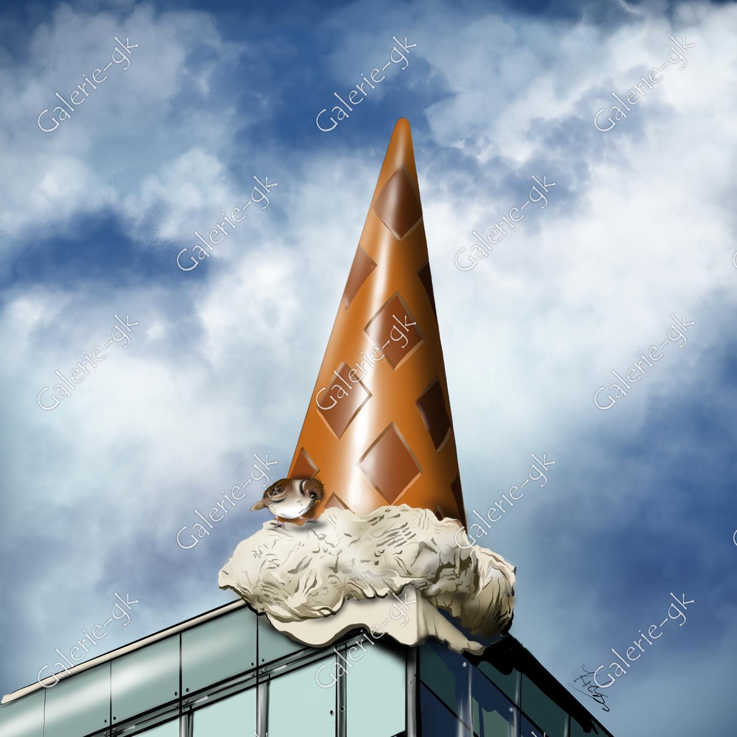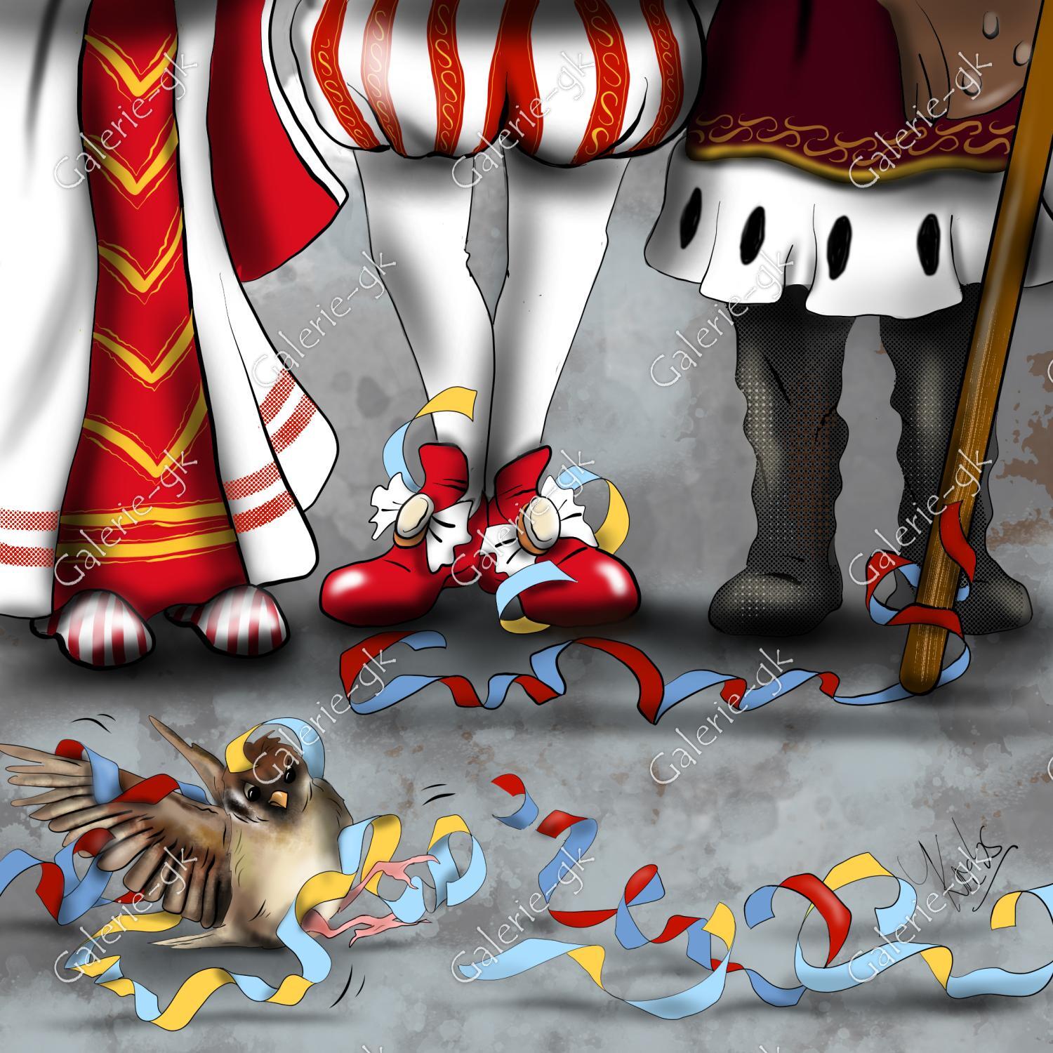 Alle DoMspatz-Motive (sie entstehen mit Adobe Sketch/ProCreate bzw. Fresco) werden als Druck auf Premium-Fotopapier im weißen Glasrahmen (33x33cm/Bildgröße: 20x20 cm, inklusive Passepartout mit handgefertigtem DoMspatz-Logo) angeboten,