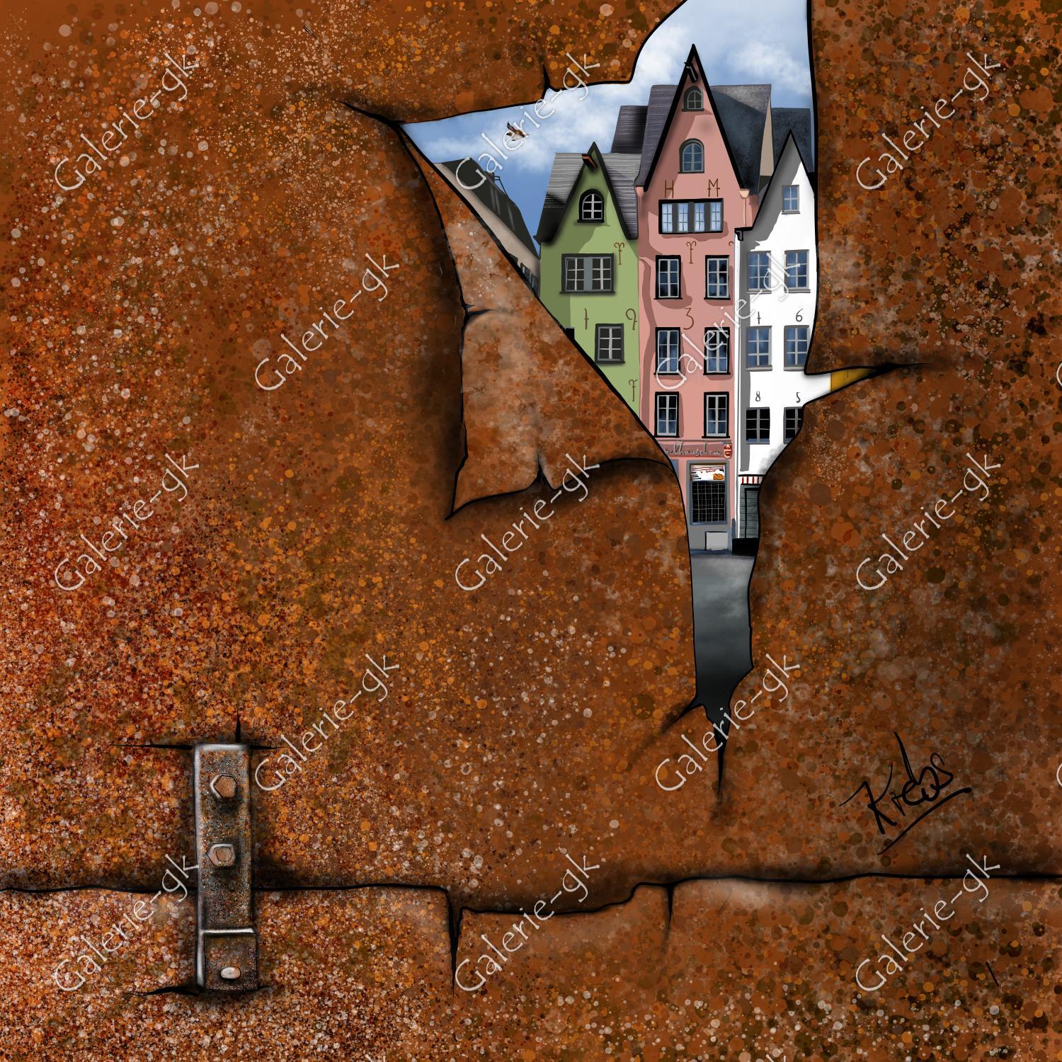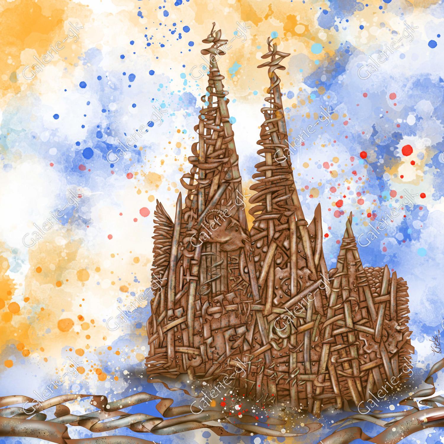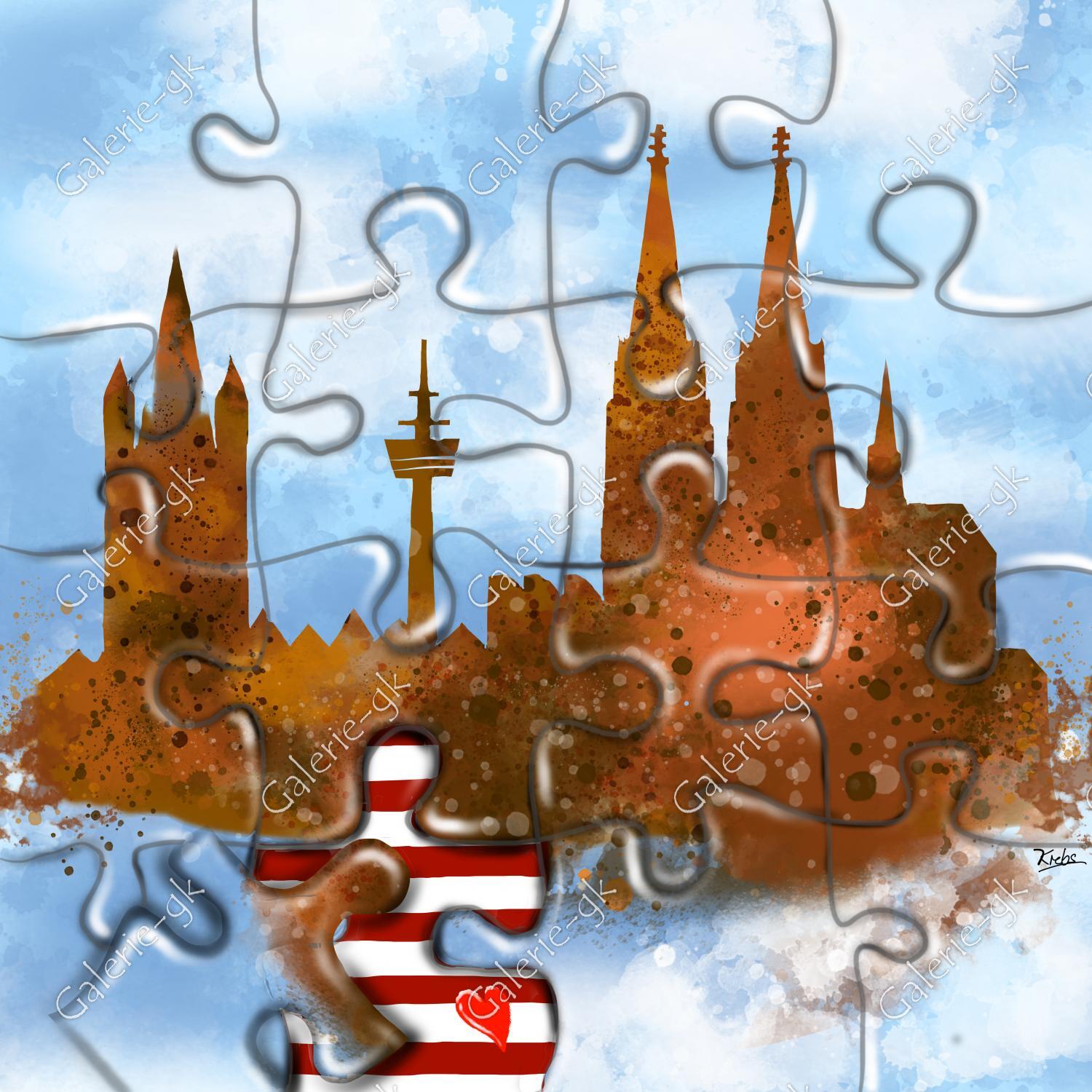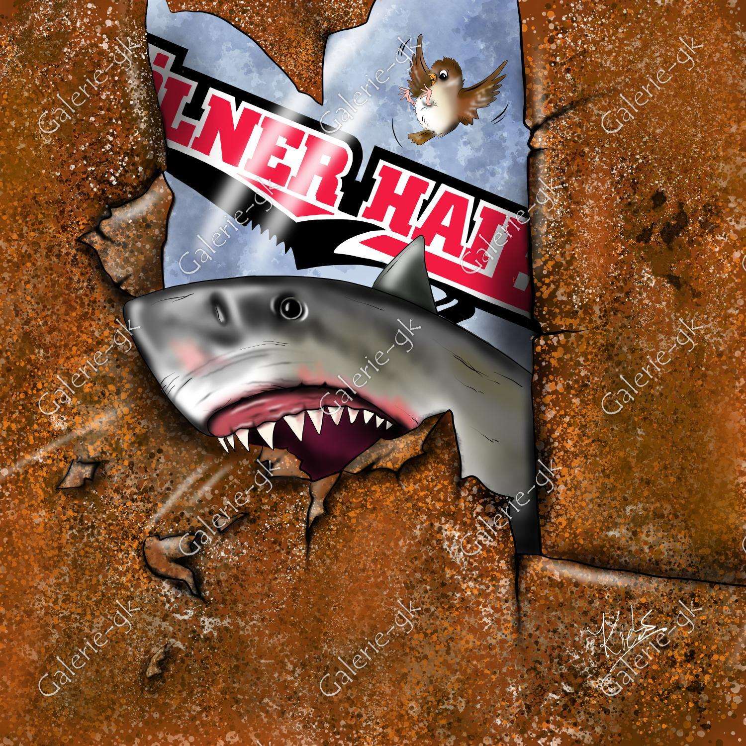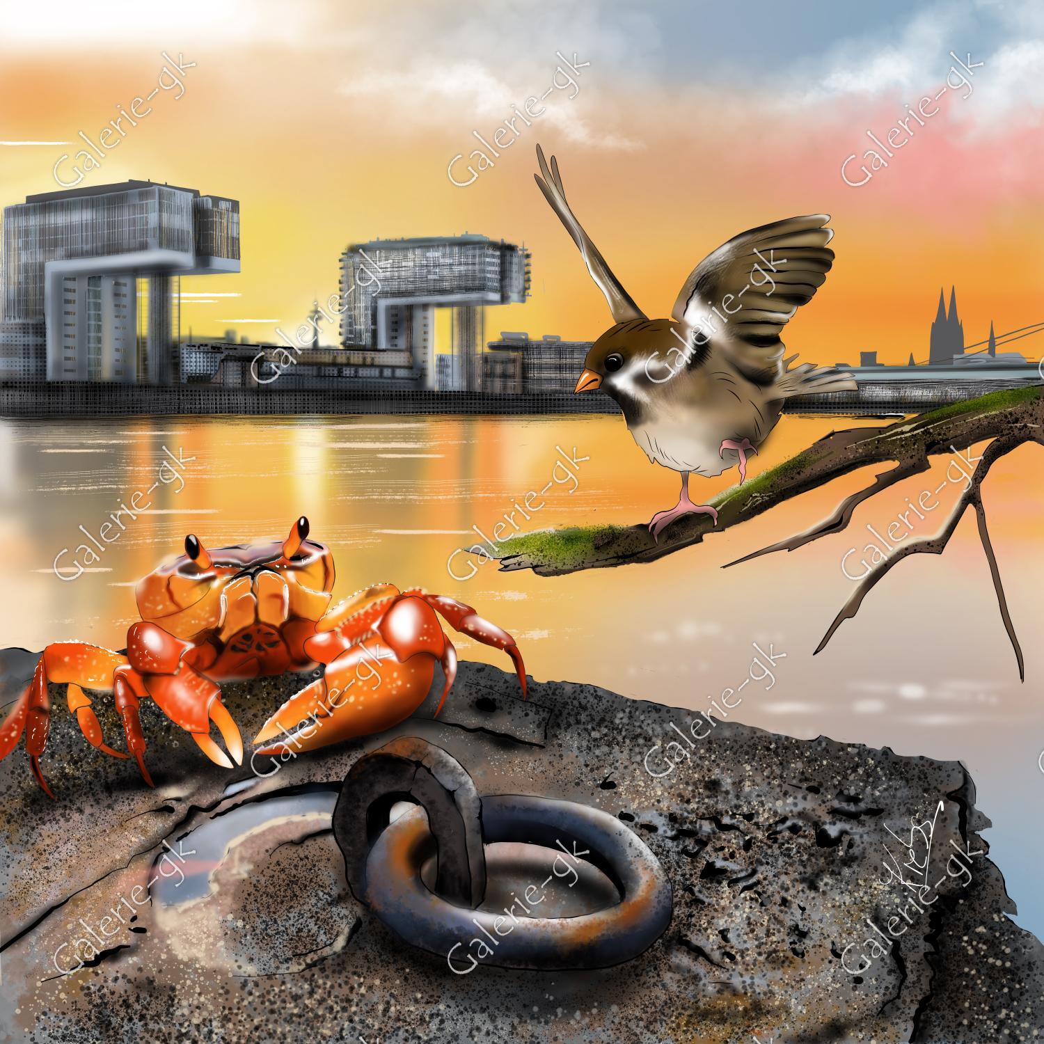 Alle DoMspatz-Motive (sie entstehen mit Adobe Sketch/ProCreate bzw. Fresco) werden als Druck auf Premium-Fotopapier im weißen Glasrahmen (33x33cm/Bildgröße: 20x20 cm, inklusive Passepartout mit handgefertigtem DoMspatz-Logo) angeboten,